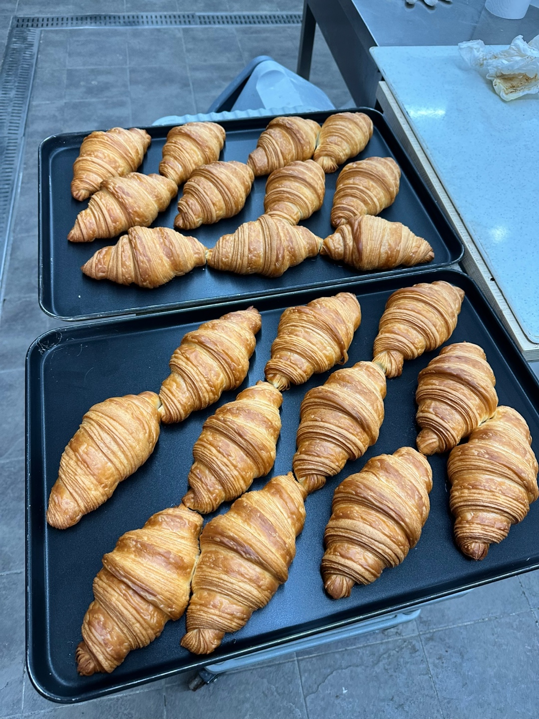 프랑스 전통 크루아상 입니다. 천연발효종을 사용한 반죽에 최고급 발효버터 -이즈니-로 시트를 만들어 구워냈습니다